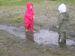Vi går ofte tur rundt om gartneriet, for her kan vi øve os i at holde i hånd to og to og vente på hinanden, som man skal kunne, når man skal starte i børnehave. Men fordi vi kan gå i fred og ro uden trafik af biler mm, kan vi også løbe, hoppe og trampe i kæmpe store vandpytter og det er skønt.